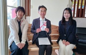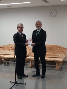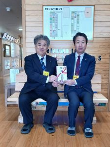 令和8年1月27日㈫に熊本県庁防災センターで木製ベンチ6台の寄贈式を行いました。当財団の甲斐理事長から越猪教育長に目録を贈呈しました。