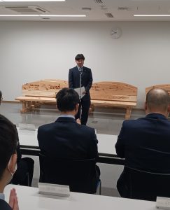 阿蘇中央高校の生徒を代表して橋本君が挨拶をしてくれました。今春から、森林・林業に関する知識や技術をさらに身につけるため、「くまもと林業大学校」に進学されるそうです。