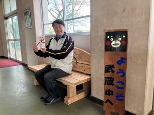 寄贈式のあと、贈呈先の小中学校に伺いました。熊本市立武蔵中学校さんです。
